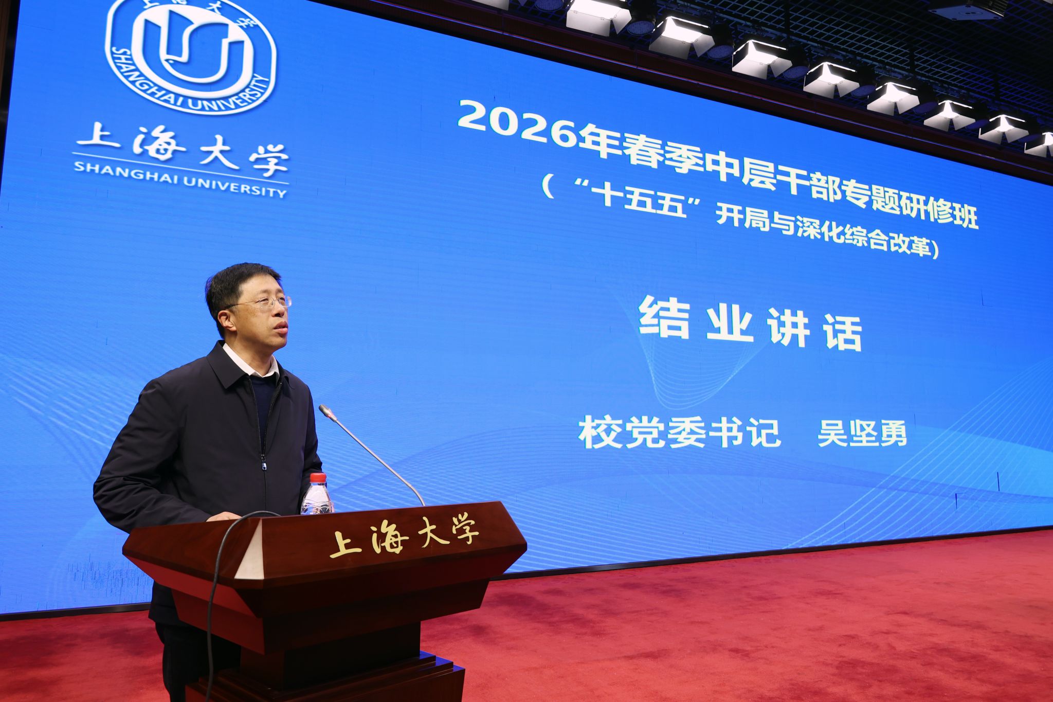 2月26日至27日,上海大学举办2026年春季中层干部专题研修班,研修班以“十五五”开局与深化综合改革为主题,通过专题培训和学习研讨,深入学习贯彻落实党的二十届四中全会精神,持续深化学校综合改革,激发中层干部“追卓越、创一流”活力,发挥中层干部的关键作用,更好引领推动学校中国特色、世界一流大学建设。