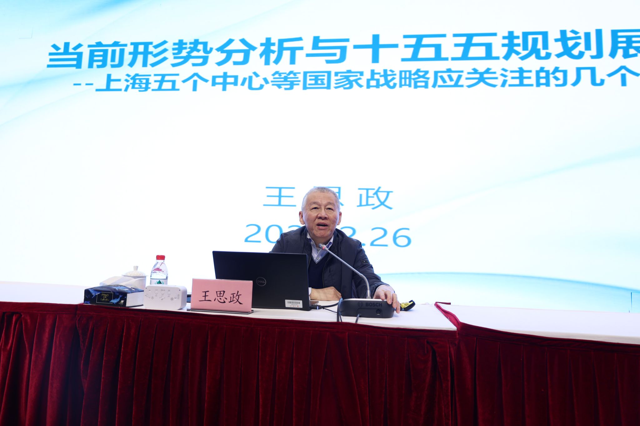上海市宏观经济学会会长王思政以“当前形势分析与‘十五五’规划展望——上海‘五个中心’等国家战略应关注的几个点”为题,主要从中国式现代化战略机遇与风险挑战并存,加快建设现代化产业体系,高水平开放的关键是制度开放,统筹教育、科技、人才强国建设,建设金融中心加大改革开放力度,坚持内需主导战略基点,提升文化软实力,中国式现代化民生为大等八个方面,就“十五五”规划中的相关国家战略任务作了详细解读。